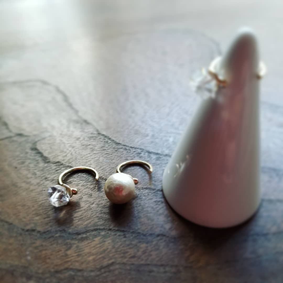 大粒なハーキマーダイヤモン10㎜×6㎜をシンプルにイヤーカフにしあげました。